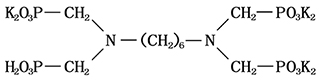 别名:己二胺四亚甲基膦酸钾盐 分子式:C10H22N2O12P4K6 相对分子质量:721 结构式: