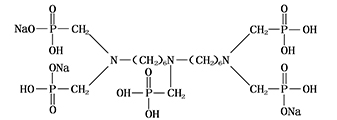 别名:二己烯三胺五亚甲基膦酸钠 分子式:C17H44-xO15N3P5Nax 相对分子质量:约731 结构式: