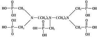 别名:二己烯三胺五亚甲基膦酸 分子式:C17H44O15N3P5 相对分子质量:685 结构式: