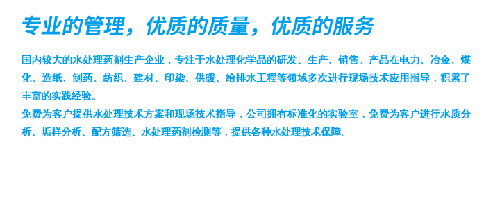 专业从事各种水处理药剂、水处理设备、化工原料、水、地源热泵、空气源热泵、地温中央空调工程的开发、生产